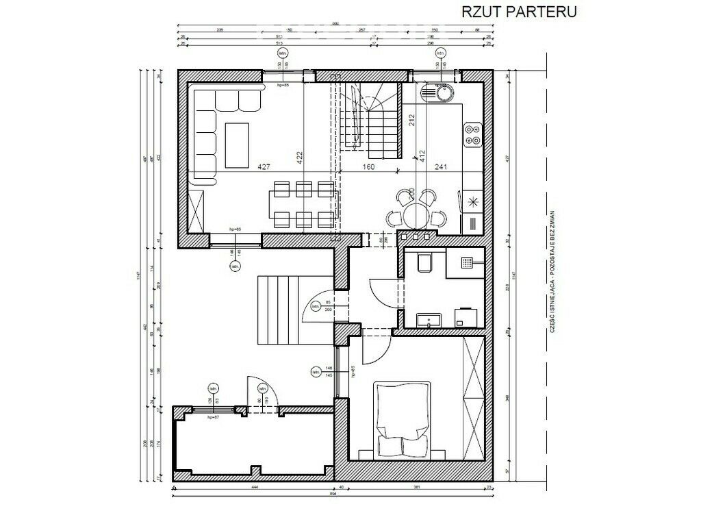 Budynek mieszkalny posiada ogromne możliwości aranżacyjne- istnieje